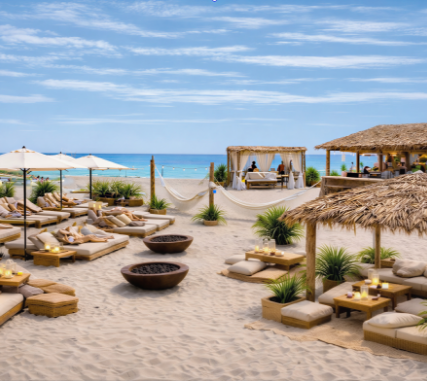 - A private beach club and lounge bar, where oceanfront dining meets laid-back elegance.