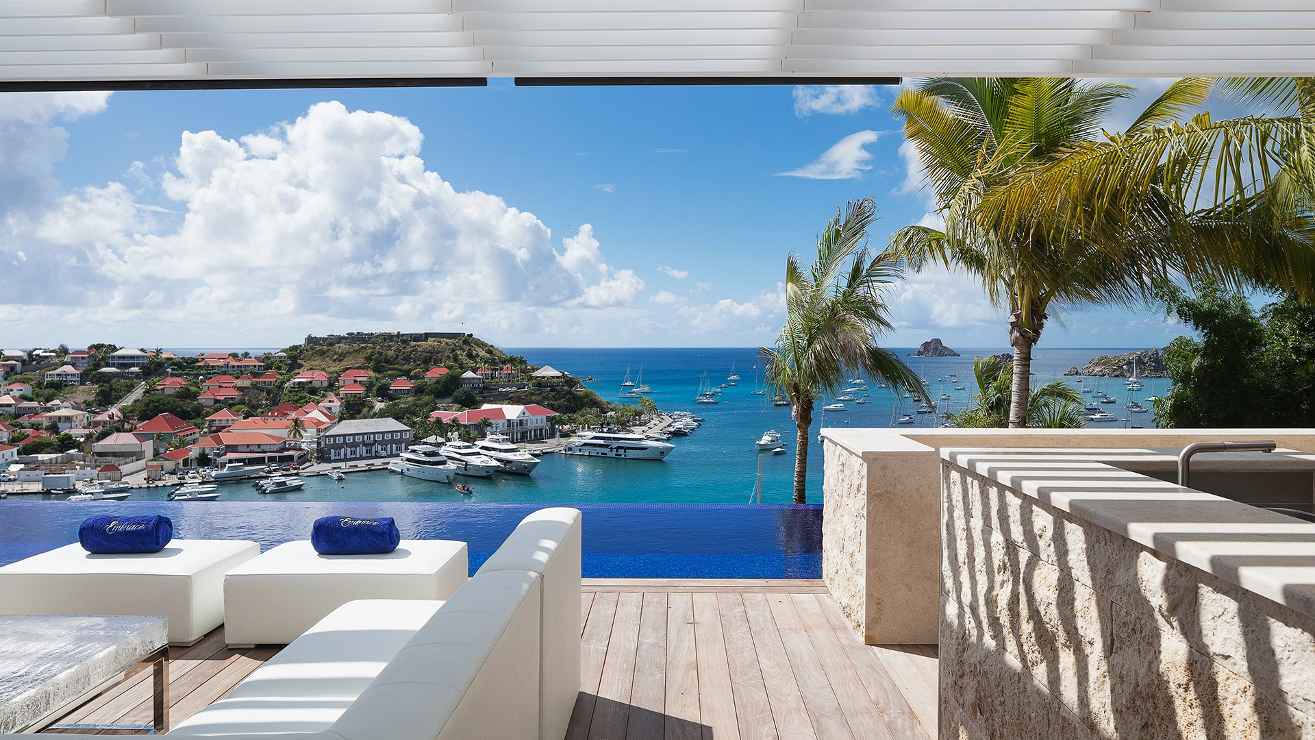 On the exclusive island of St. Barths, Embrace presents a bold interpretation of the luxury villa experience. Carved into the mountainside overlooking Gustavia, the expansive, four-level residence features panoramic views of the sea and harbor, five suites and two infinity edge pools. After more than a decade of traveling throughout the Caribbean and experiencing its most exclusive hotels and villas, the owners collaborated with architects and artisans from around the world to create a luxury villa that reflects their respect for nature, passion for design and love for St. Barths.